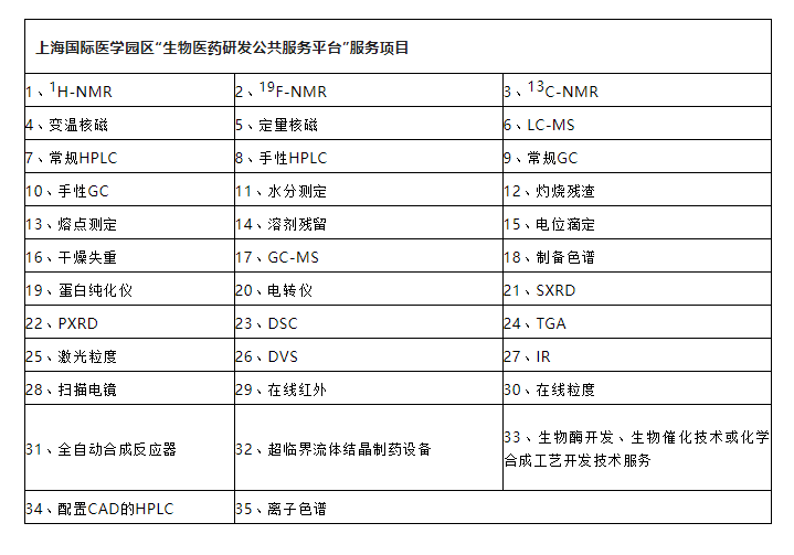 平台配备了二十多台大型科学仪器设备:化学家的“火眼金睛”——核磁波谱扫描仪、“分子量推测快捷小助手” ——液质/气质联用仪、不同型号的“纯化小能手”——制备色谱仪、“残留溶剂电子眼”——气相色谱仪、各类高效液相色谱仪,除此之外,还配备有电位滴定仪、水分测定仪、马弗炉等小型专业仪器设备,可为生物研发提供公共服务的有蛋白纯化仪、电转仪等大型仪器设备;此外平台还与华东理工大学结晶工程国家重点实验室联合设立共享实验室,可为客户提供各种涉及晶型检测的服务,包括XRPD(X射线粉末衍射)、DSC(差示扫描量热)、TGA(热重分析)、SXRD(X射线单晶衍射)等。