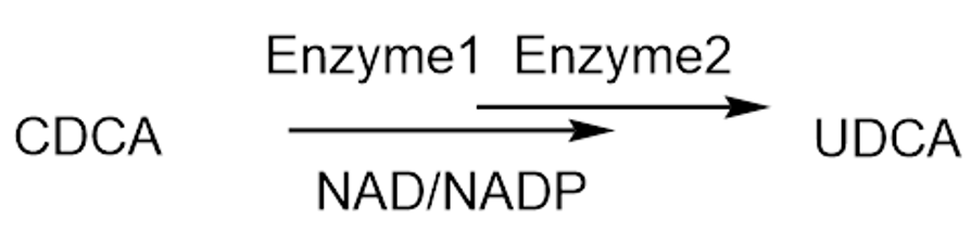 目前市场上供应的熊去氧胆酸多为人工合成,合成方法有化学合成法和生物酶法等。化学法合成熊去氧胆酸的路径相对比较繁琐,需要多步羟基保护和去保护步骤,导致总收率低、成本高。以鹅去氧胆酸(CDCA)为原料通过两步酶法制备熊去氧胆酸的生物酶法具有路径较短、成本低的优势,因而被越来越多应用于工业化生产。生物酶法合成UDCA路线:
