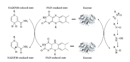 图1. 硝基还原酶催化芳香硝基化合物的还原过程